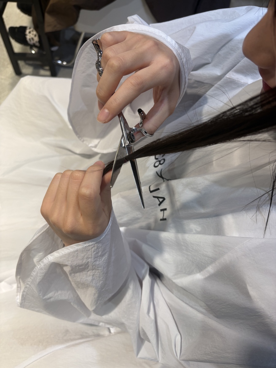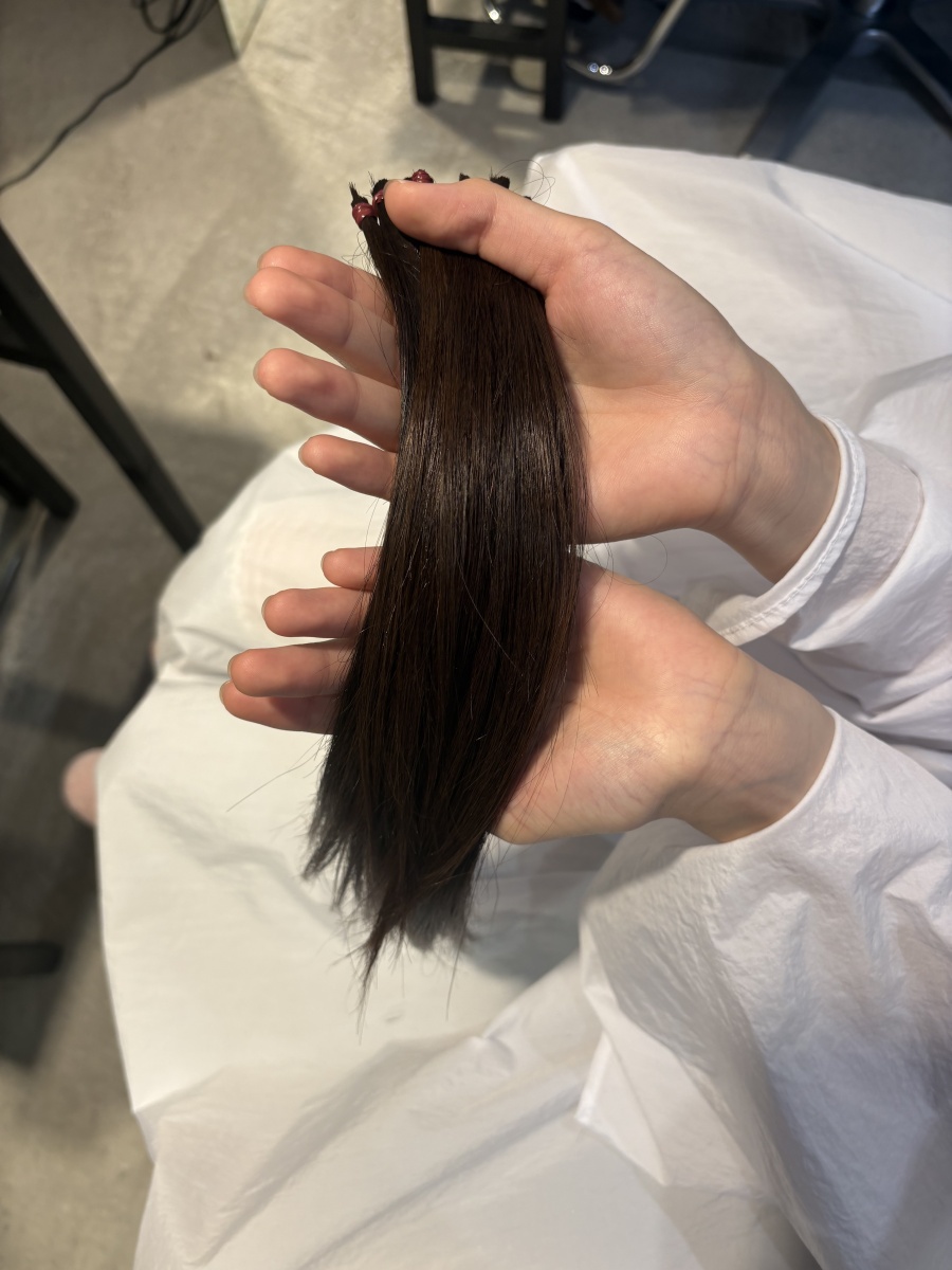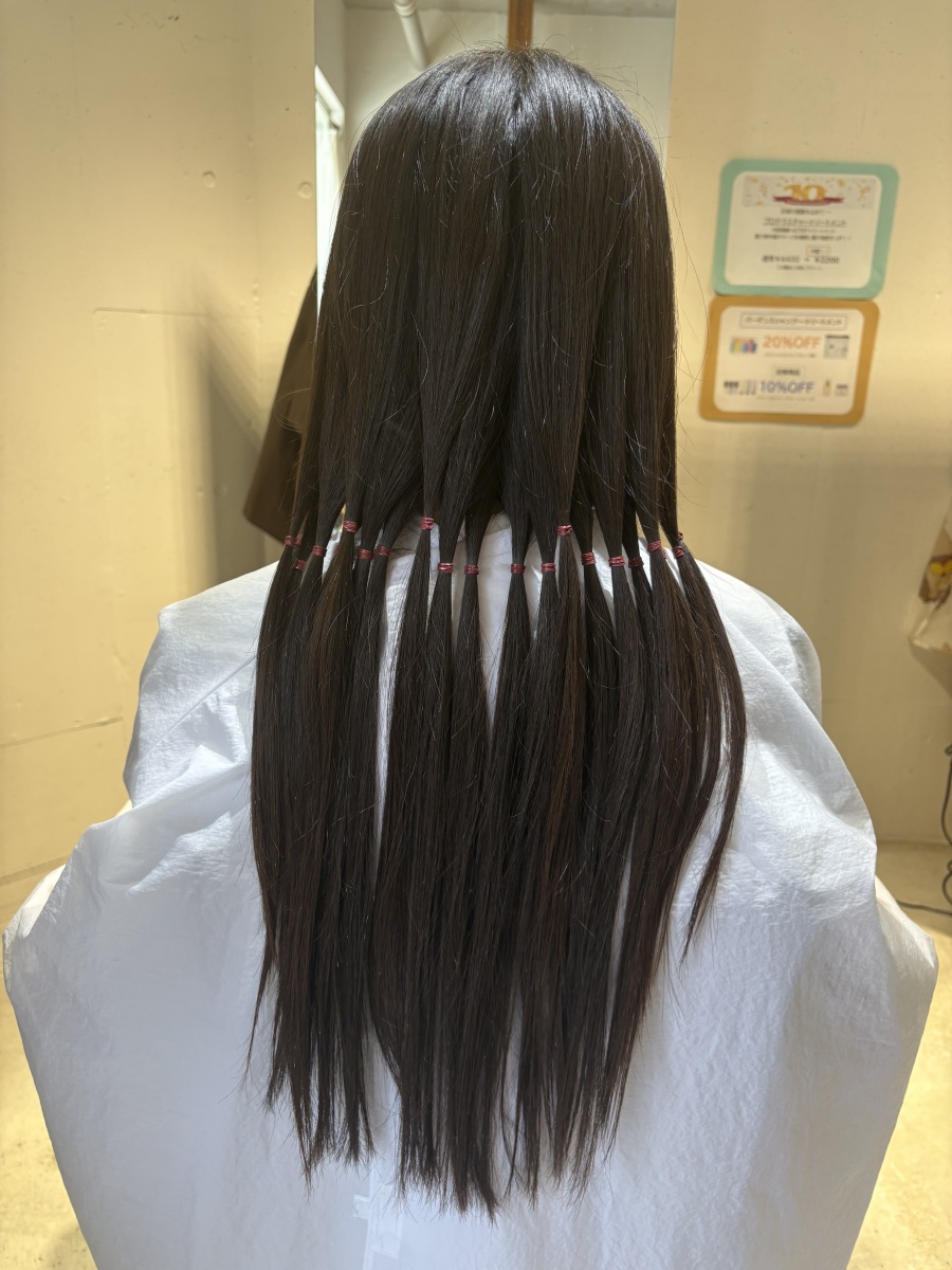 長さが十分足りていたので、もし良ければヘアドネーションとしてカットして寄付することも出来ることを提案し、快諾いただきました。