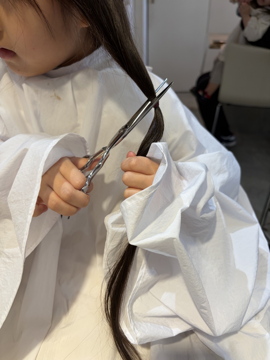 ヘアドネーションをしようと伸ばしてこられ、お嬢さんは初めてのカット✂