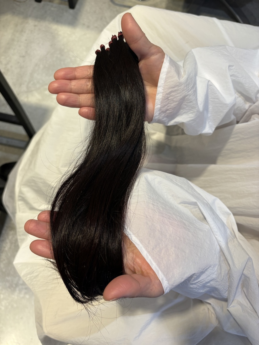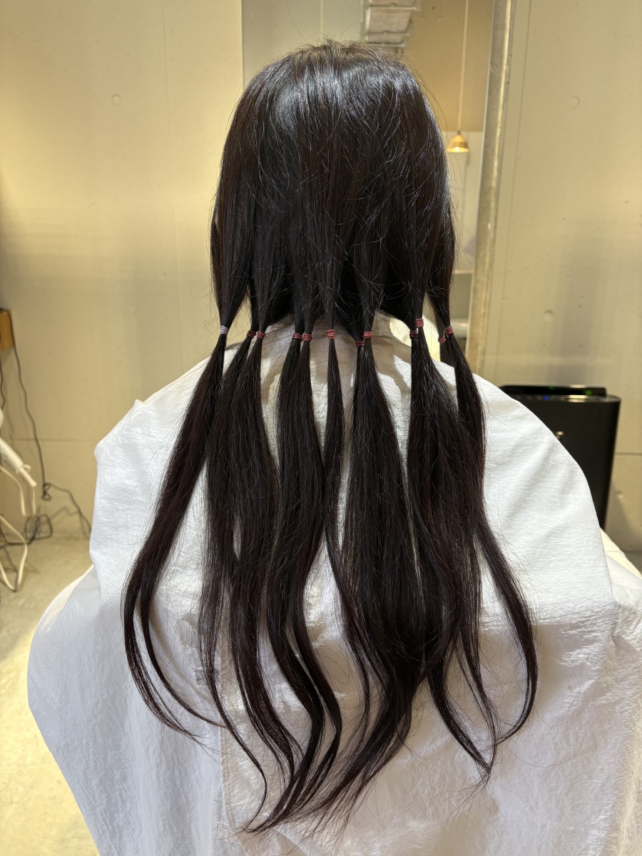 丁寧にお手入れされていたツヤツヤ毛束は長い部分で40cm、